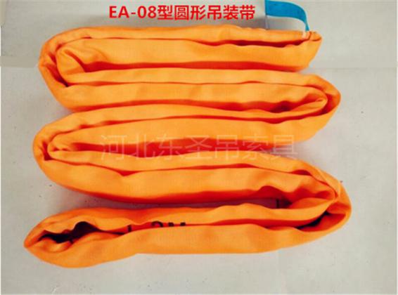 圓型吊裝帶為外設保護套的環形合成纖維繩帶,內部穿繩采用滌綸工業長絲織成,強度較高,承重量大,耐磨性強,適宜采用垂直吊裝方法運輸體積和重量較大的圓頂鋼質走廊。